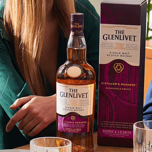 Rượu Glenlivet Distillers Reserve (thường được gọi là Glenlivet Tím) chinh phục người uống bằng sự êm ái.